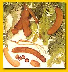 Food UsesThe food uses of the tamarind are many. The tender, immature, very sour pods are cooked as seasoning with rice, fish and meats in India. The fully-grown, but still unripe fruits, called "swells" in the Bahamas, are roasted in coals until they burst and the skin is then peeled back and the sizzling pulp dipped in wood ashes and eaten. The fully ripe, fresh fruit is relished out-of-hand by children and adults, alike. The dehydrated fruits are easily recognized when picking by their comparatively light weight, hollow sound when tapped and the cracking of the shell under gentle pressure. The shell lifts readily from the pulp and the lengthwise fibers are removed by holding the stem with one hand and slipping the pulp downward with the other. The pulp is made into a variety of products. It is an important ingredient in chutneys, curries and sauces, including some brands of Worcestershire and barbecue sauce, and in a special Indian seafood pickle called "tamarind fish". Sugared tamarind pulp is often prepared as a confection. For this purpose, it is desirable to separate the pulp from the seeds without using water. If ripe, fresh, undehydrated tamarinds are available, this may be done by pressing the shelled and defibered fruits through a colander while adding powdered sugar to the point where the pulp no longer sticks to the fingers. The seeded pulp is then shaped into balls and coated with powdered sugar. If the tamarinds are dehydrated, it is less laborious to layer the shelled fruits with granulated sugar in a stone crock and bake in a moderately warm oven for about 4 hours until the sugar is melted, then the mass is rubbed through a sieve, mixed with sugar to a stiff paste, and formed into patties. This sweetmeat is commonly found on the market in Jamaica, Cuba and the Dominican Republic. In Panama, the pulp may be sold in corn husks, palmleaf fiber baskets, or in plastic bags.